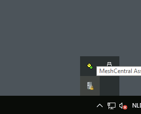 Open de systeembalk rechtsonderin je scherm met het pijltje. Klik nu op het icoontje dat we in dit voorbeeld uitgelicht hebben. Als je er met de muis op gaat staan zie je 'MeshCentral Assistant'.